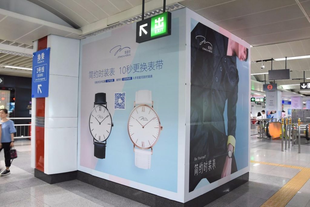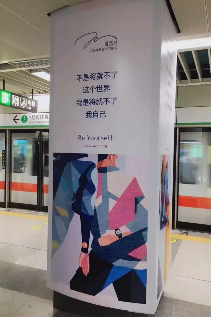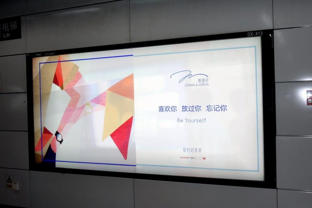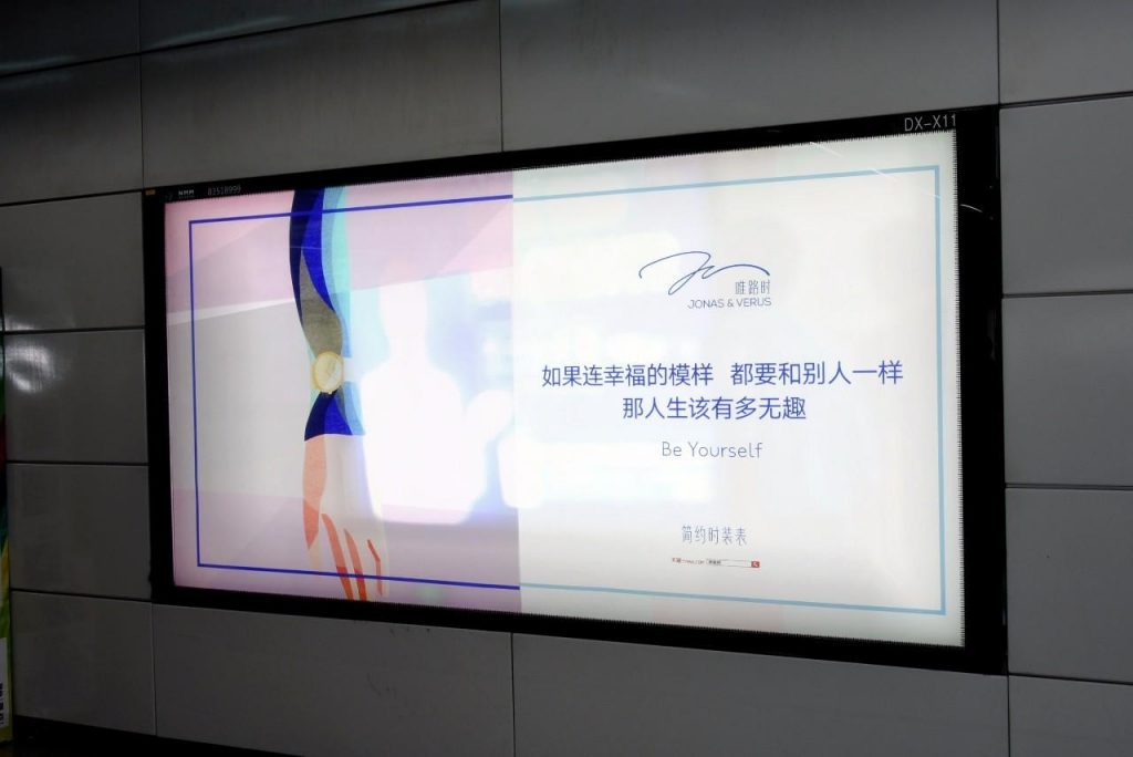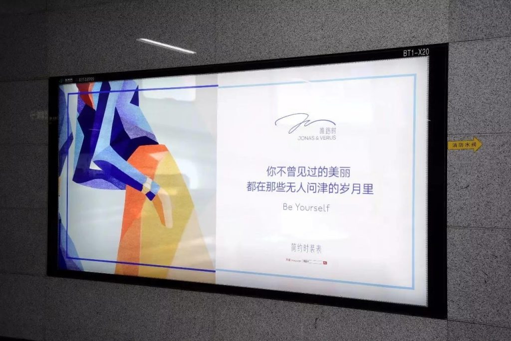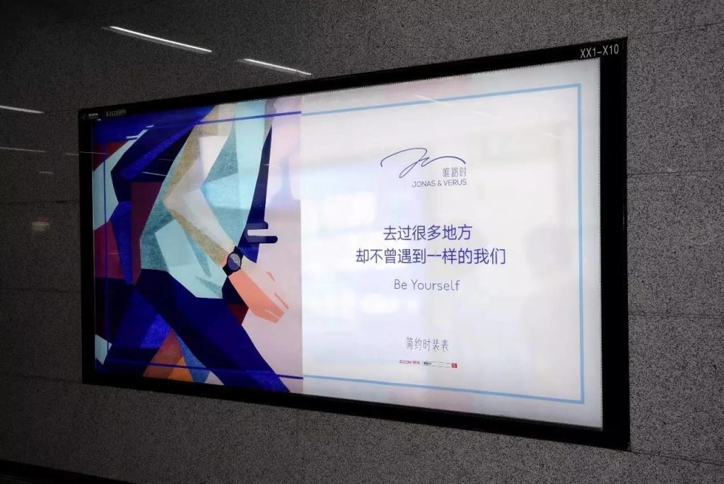 這是簡(jiǎn)約時(shí)裝表品牌JONAS&VERUS唯路時(shí)這幾天在深圳地鐵投放的一組廣告。