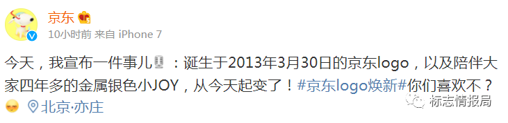 昨天京東在其官方微博以及官方微信宣布對自己的品牌LOGO以及吉祥物進行“JOY”進行調(diào)整。